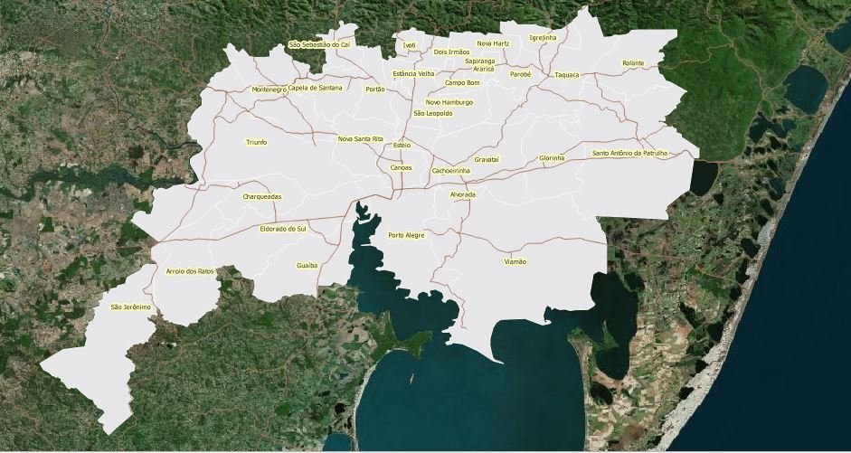 Municípios integrantes: Porto Alegre, Alvorada, Araricá, Arroio dos Ratos, Cachoeirinha, Campo Bom, Canoas, Capela de Santana, Charqueadas, Dois Irmãos, Eldorado do Sul, Estância Velha, Esteio, Glorinha, Gravataí, Guaíba, Igrejinha, Ivoti, Montenegro, Nova Hartz, Nova Santa Rita, Novo Hamburgo, Parobé, Portão, Rolante, Santo Antônio da Patrulha, São Jerônimo, São Leopoldo, São  Sebastião do Caí, Sapiranga, Sapucaia do Sul, Taquara, Triunfo